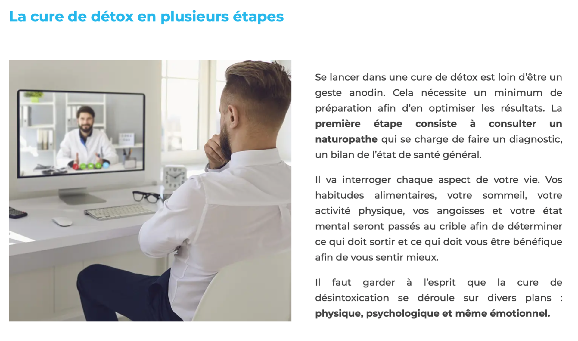 De plus, des spécialistes sont disponibles sur toute l'étendue du territoire, vous pouvez de ce fait vous faire consulter près de chez vous et même sur votre lieu de vacances. Découvrez la cure de détox adapté à votre corps !